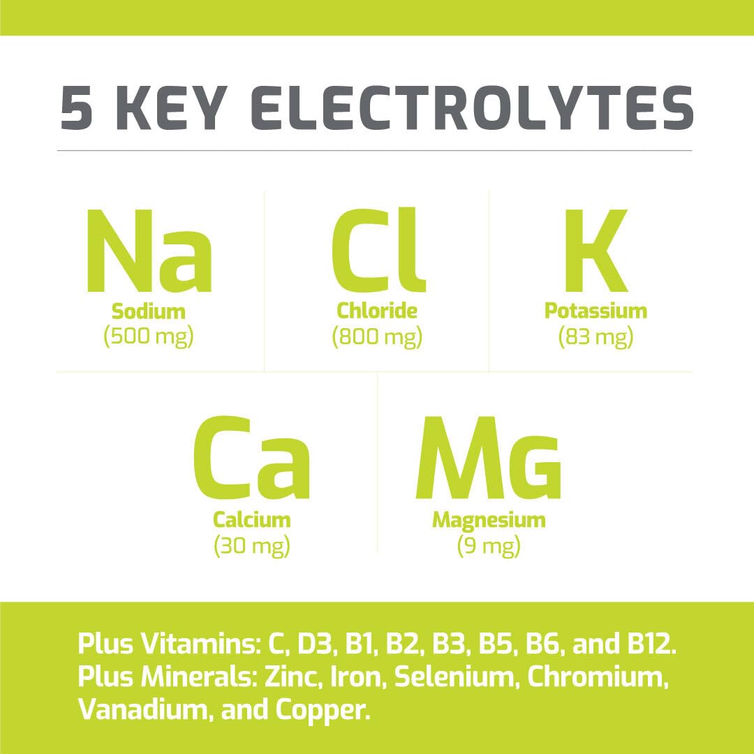 - HYDRATION: Our electrolytes drink mix contains: Sodium (500 mg), Chloride (800 mg), Potassium (83 mg), Calcium (30 mg), & Magnesium (9 mg) & includes 19 Vitamins & Minerals with six B Vitamins: B1, B2, B3, B5, B6, and B12.