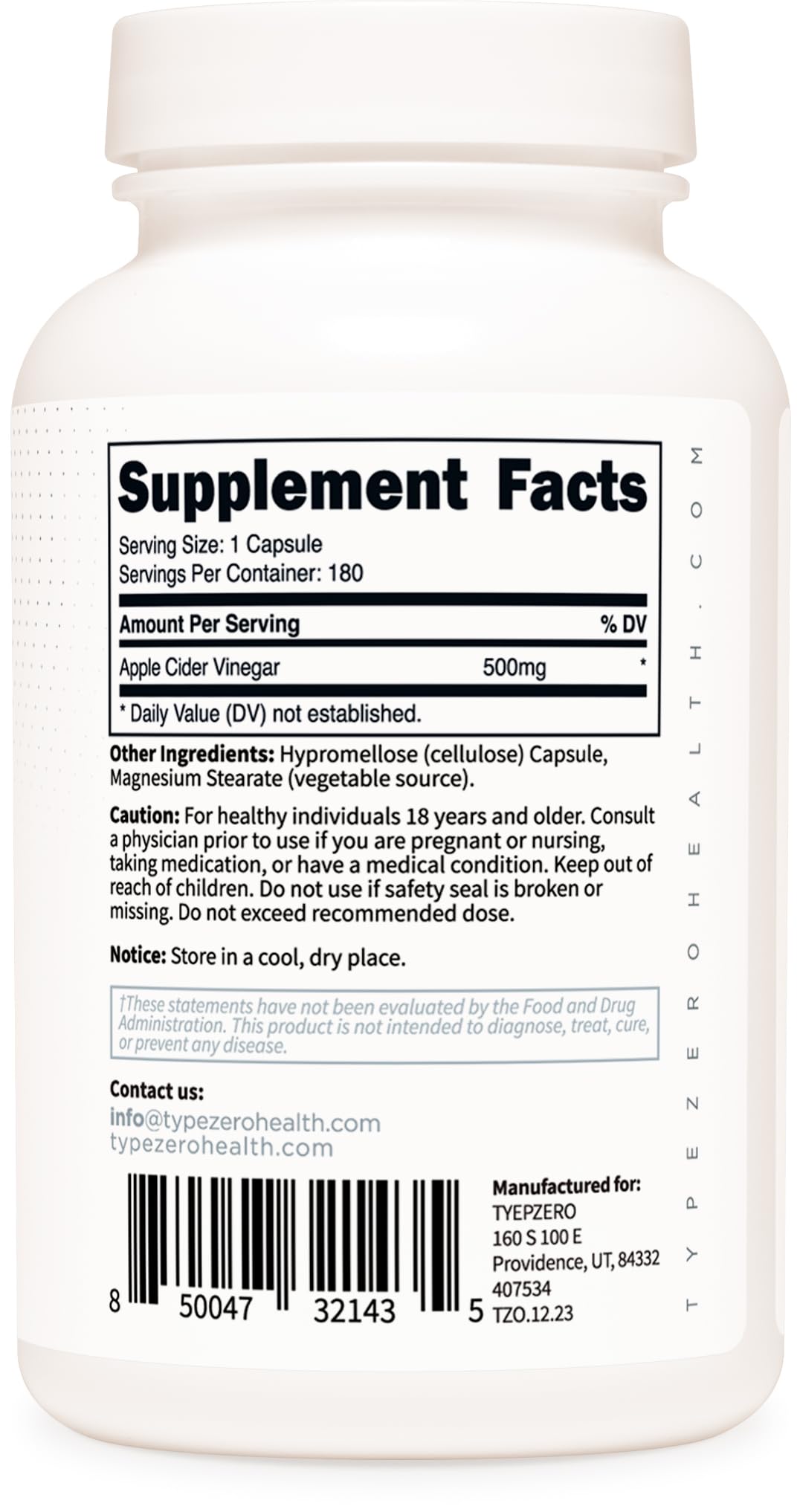 - Convenient and Easy-to-Use: Type Zero Apple Cider Vinegar Capsules offer the benefits of apple cider vinegar in a convenient capsule form, perfect for those with busy lifestyles or on-the-go.