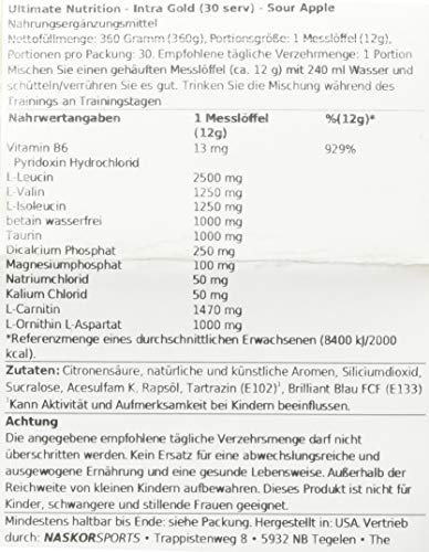 Ultimate Nutrition Intra Gold Workout Energy Supplement - Blend of Electrolytes with Carnitine, Ornithine, and Aspartate, 30 Servings, Sour Apple