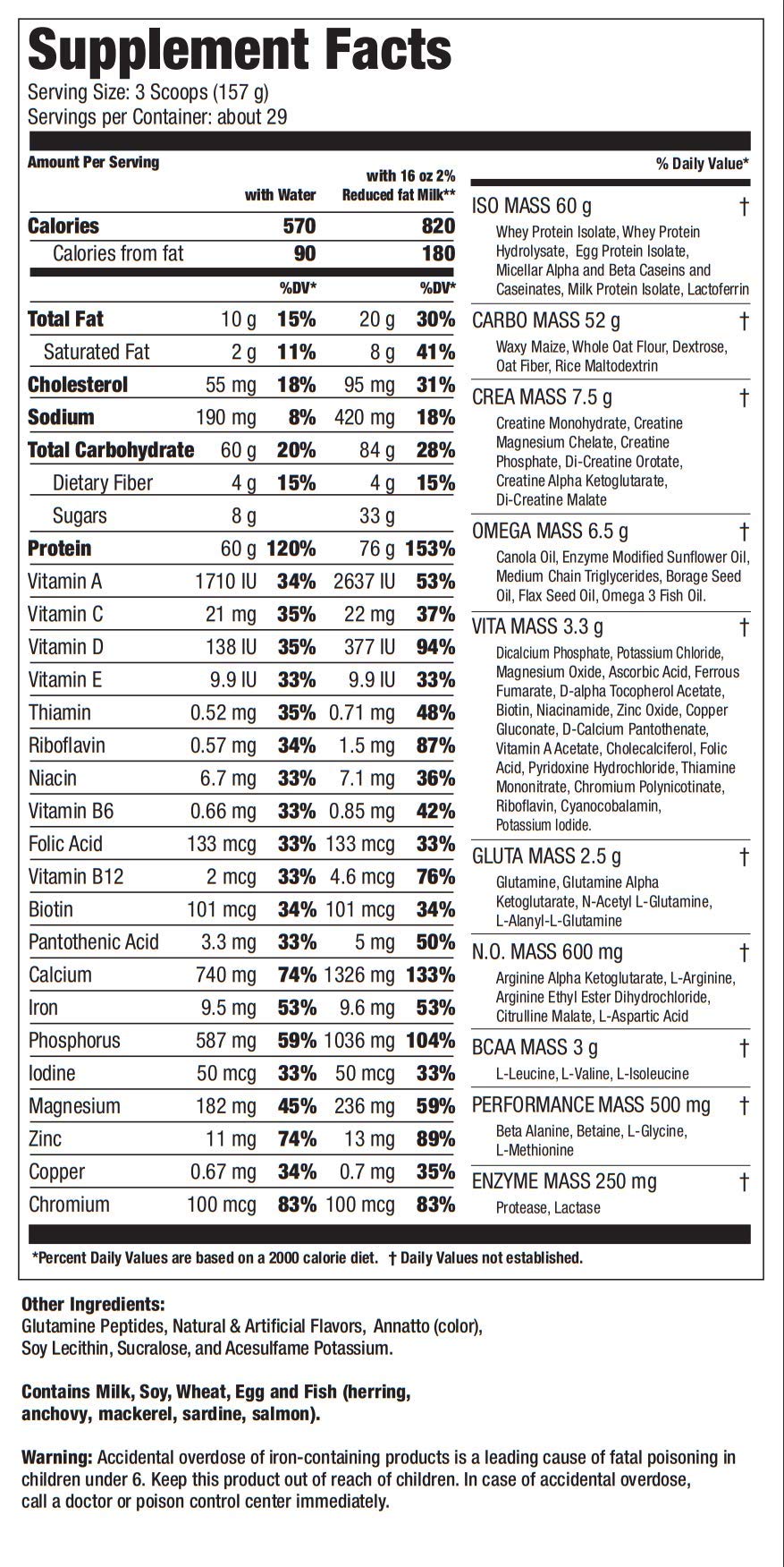 Ultimate Nutrition ISO Mass Xtreme Gainer, Weight Gainer Protein Powder with Creatine, 60 Grams of Protein, Whey Isolate Protein Powder for Lean Muscle Gain, 10 LBS with 30 Servings, Vanilla Ice Cream