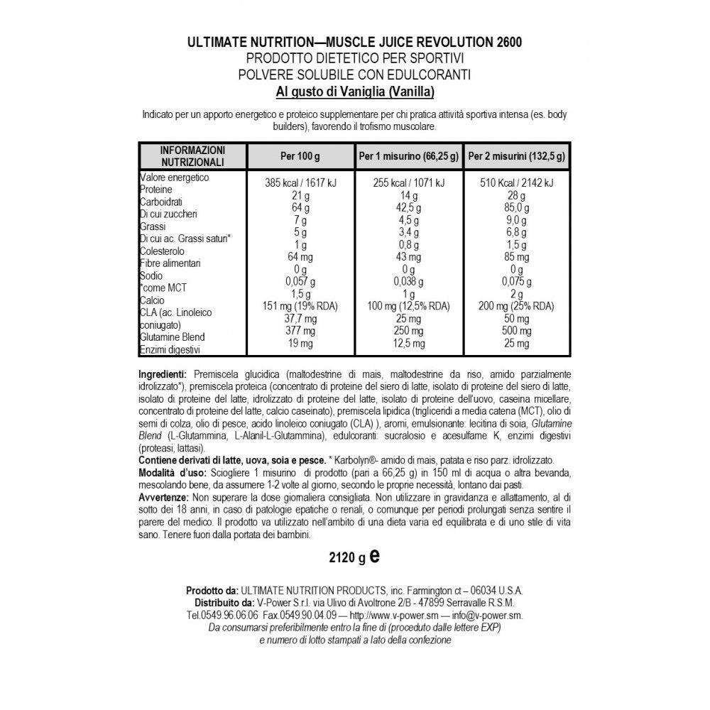 Ultimate Nutrition Muscle Juice Revolution 2600 Weight Gainer, Muscle Recovery with Glutamine, Micellar Casein, Time Release Complex Carbohydrates, Vanilla Protein Powder, 4.69 Pounds
