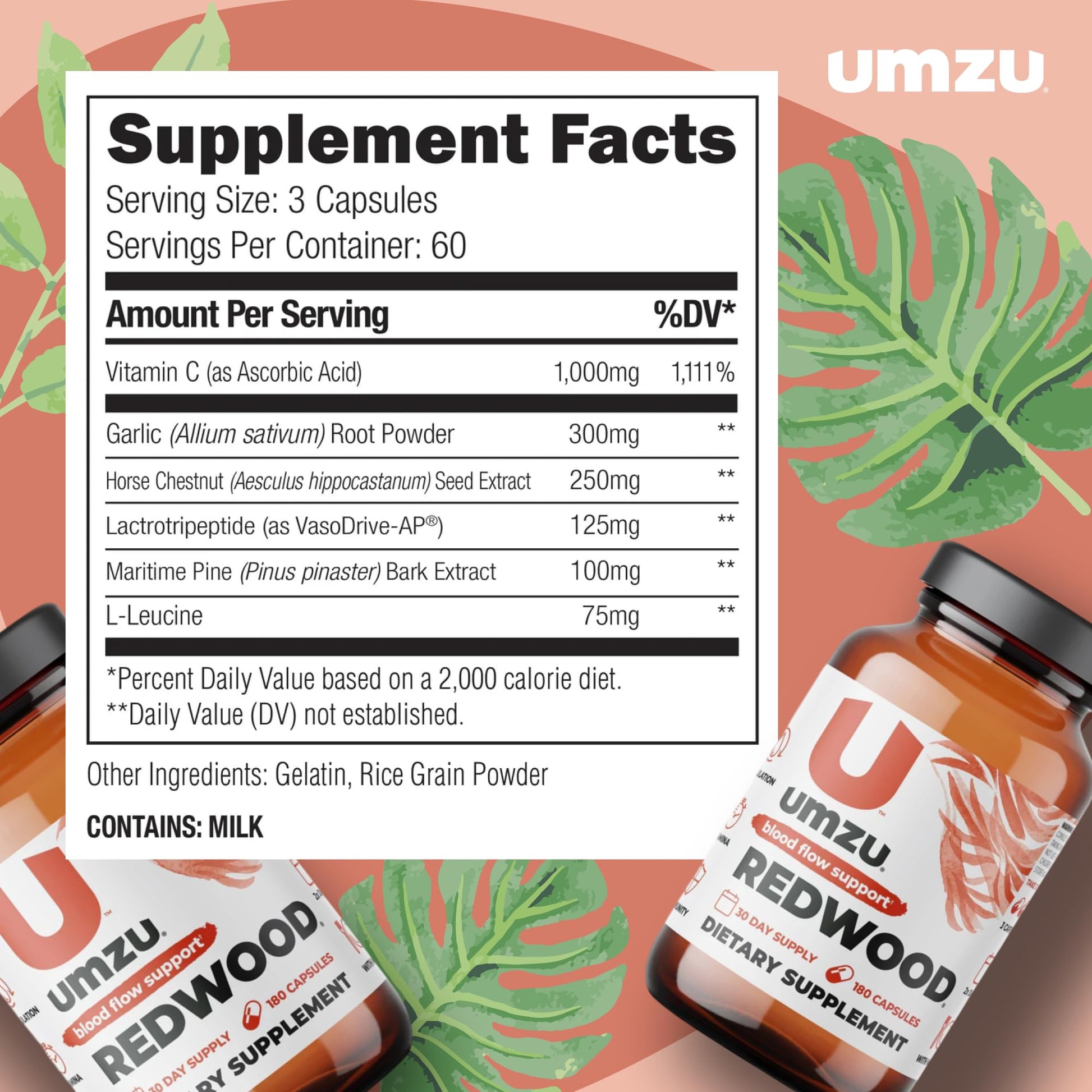 - HEALTHY CIRCULATION- The vitamins and minerals in Redwood work together to support optimal blood flow and circulation, helping deliver oxygen and nutrients efficiently.