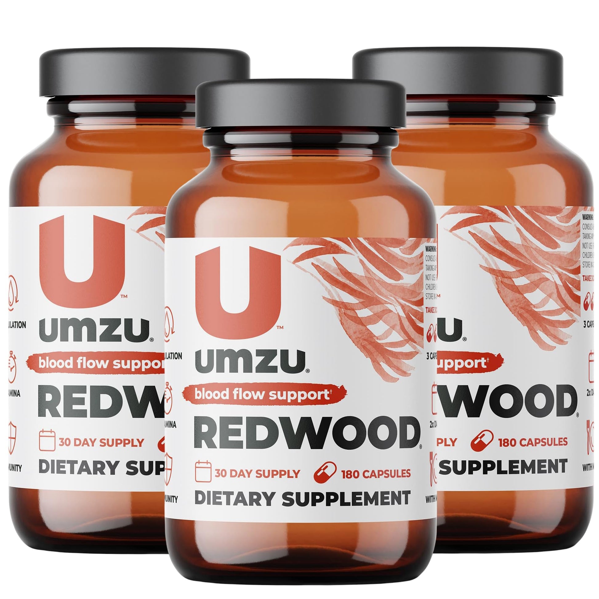 UMZU Redwood Nitric Oxide Booster & Blood Circulation Supplement, 3 Bottles (90 Day Supply | 540 Capsules)