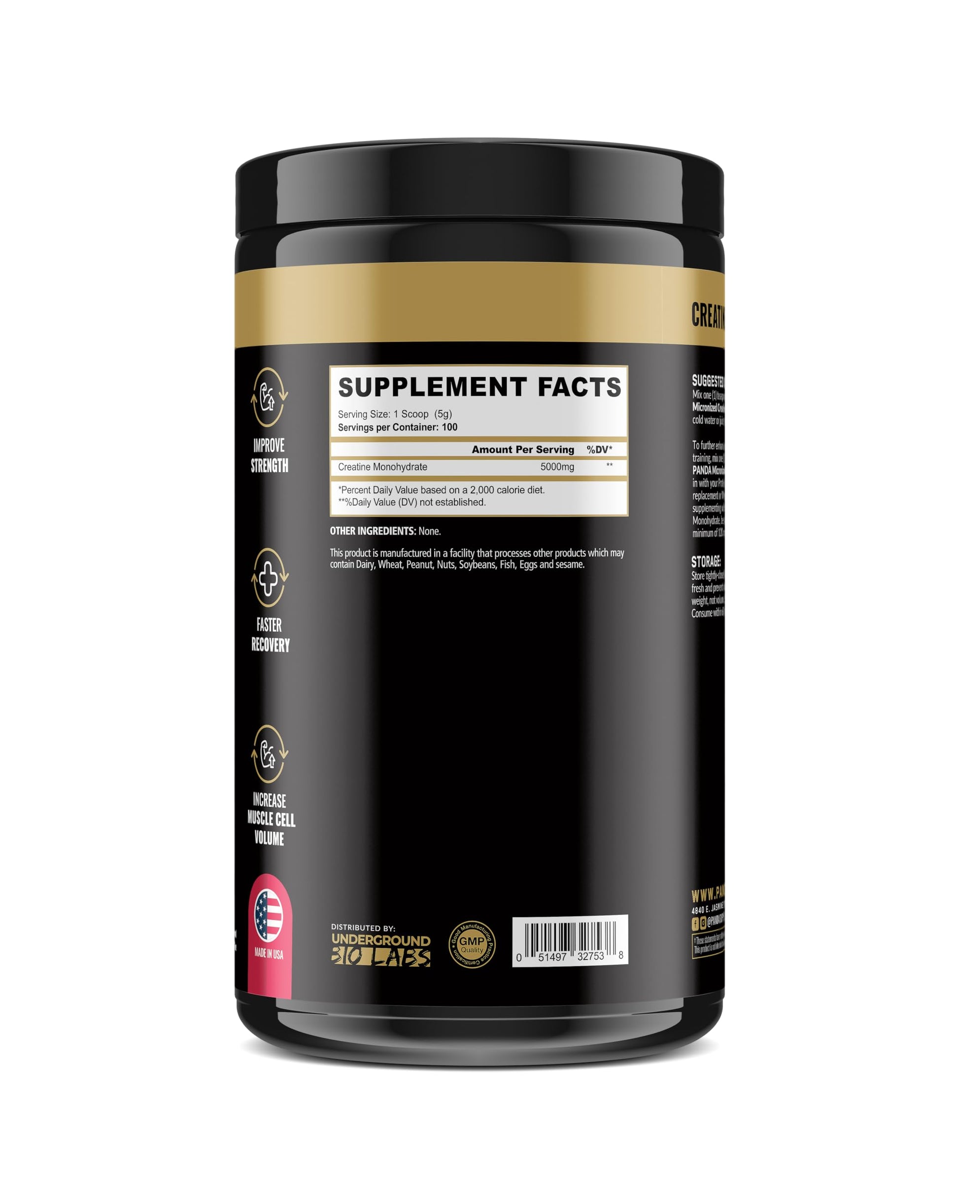 Underground Bio Labs: Panda Supps Micronized Creatine 5000mg | Pre and Post Workout Recovery Drink | Enhanced Muscle Mass, Athletic Performance, and Muscle Recovery - Unflavored (100 Servings)