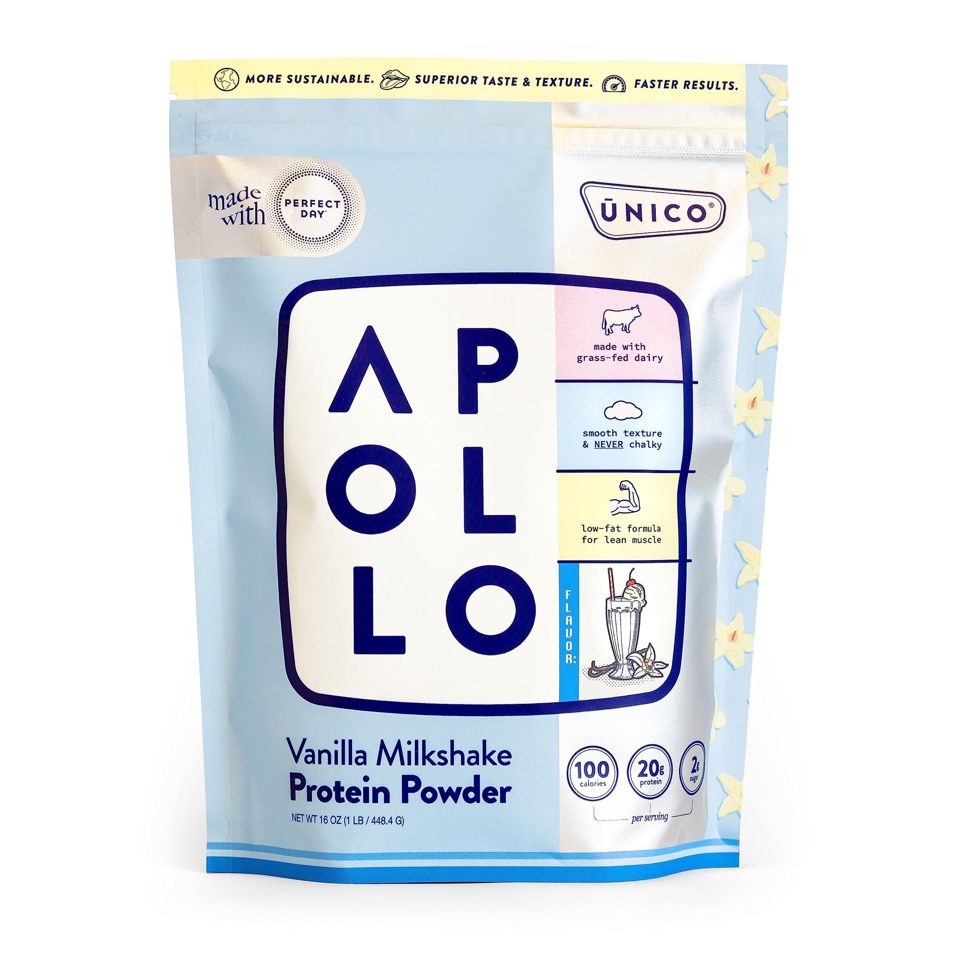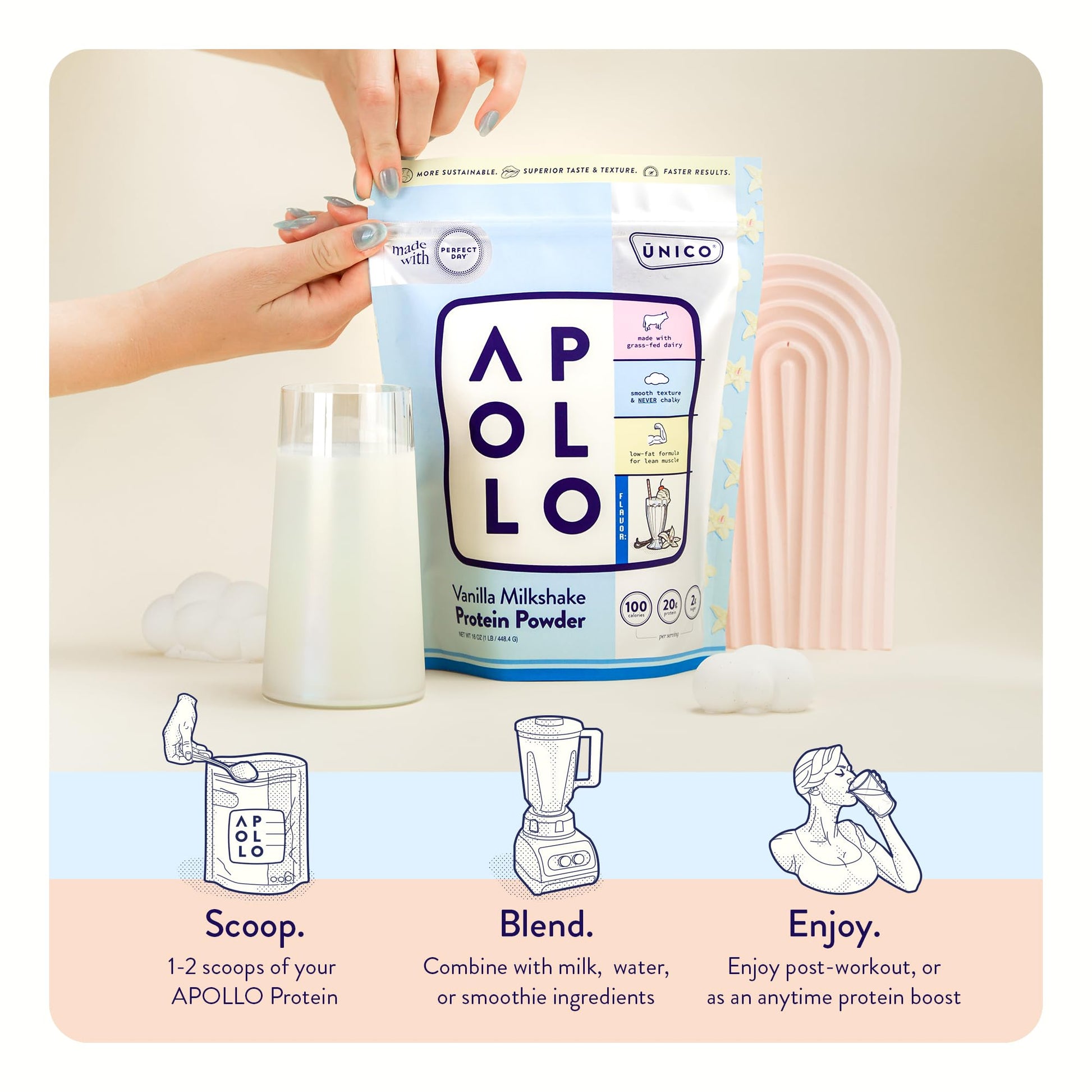 Unico Apollo Vanilla Milkshake Protein Powder - 100 Calories - 20g Protein - 0g Sugar - Non-Chalky & Easy to Digest - Whey/Casein Blend - Keeps You Full & Reduces Cravings | Great for Weight Loss