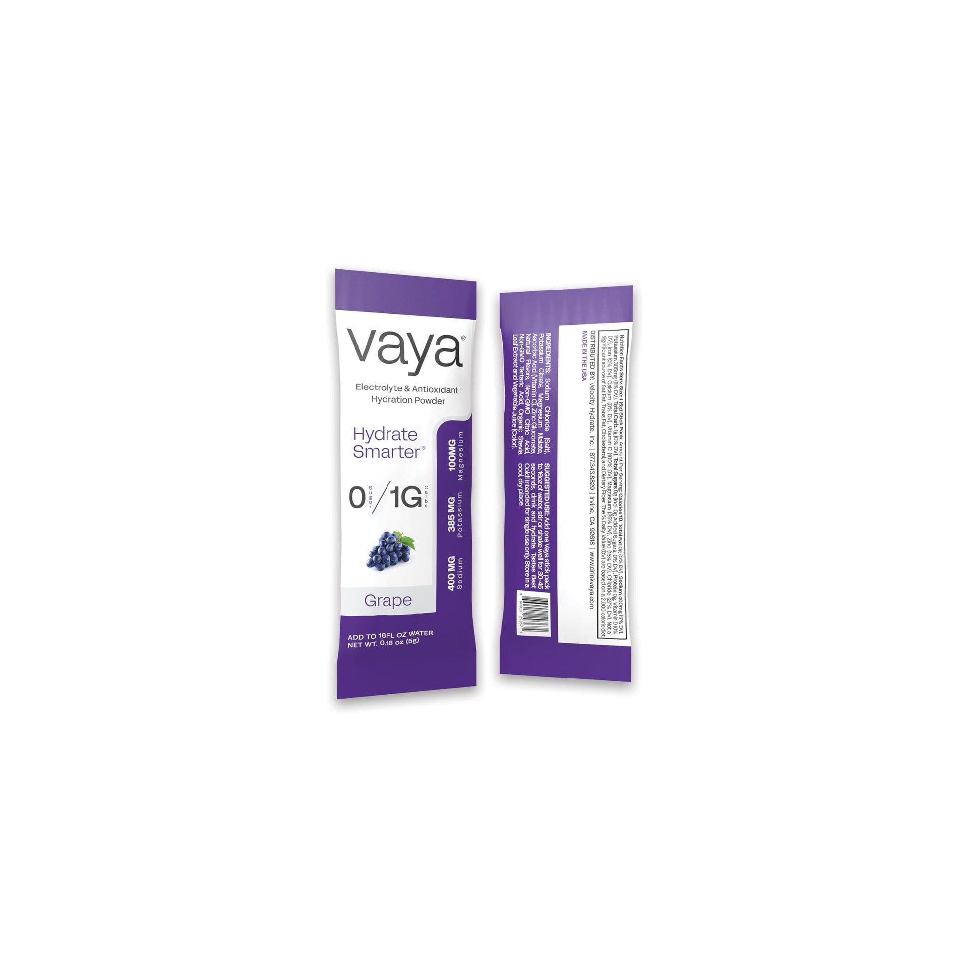 - Sugar Free: Enjoy the refreshing taste of natural grape flavor without the added sugar. Vaya’s sugar free hydration packets are designed to provide clean, effective hydration. By eliminating sugar, Vaya ensures that every serving focuses solely on delivering key electrolytes, vitamins, and trace minerals to support your active lifestyle. Perfect for those following low-carb, keto, or paleo diets, our hydration packets offer a refreshing flavor without compromise.