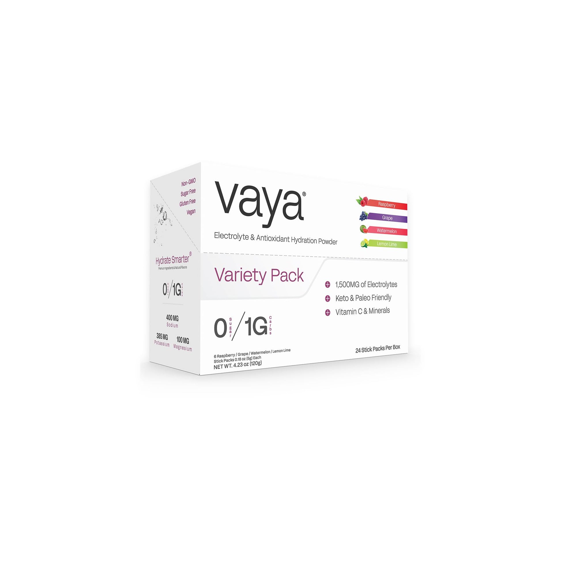Vaya Sugar Free Premium Hydration Electrolyte Powder | Variety Pack | 24 Stick Packs | 1G Carbs, 1,500MG Electrolytes, Vitamin C & Antioxidants | 4 Flavors | Raspberry, Grape, Watermelon & Lemon Lime