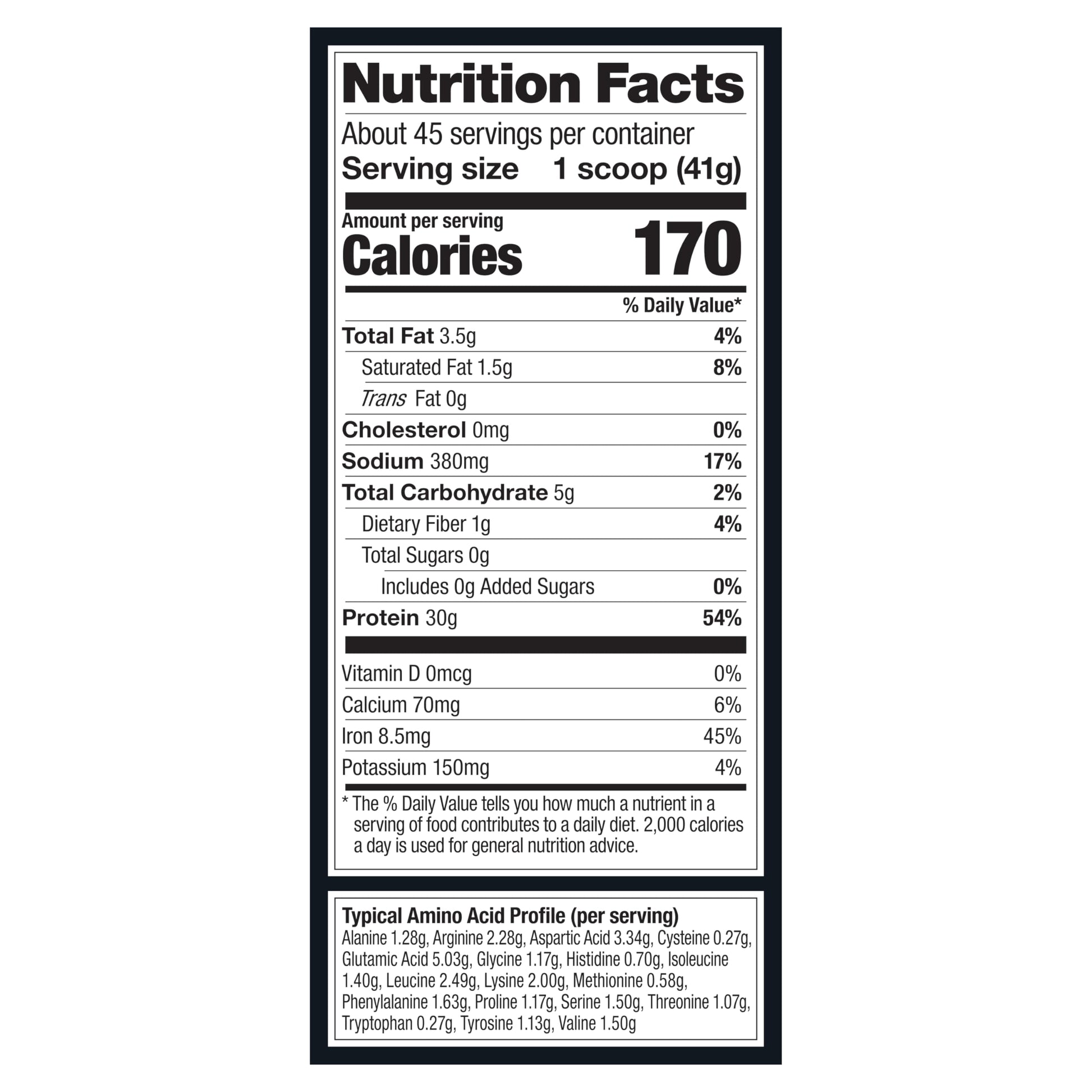 - Vega Premium Sport Protein Vanilla Protein Powder: One 4lb 1.8 oz tub of Vega Premium Sport Protein Vanilla Protein Powder contains about 45 servings; the vanilla drink mix blends seamlessly into water, milk, or protein smoothie for rich vanilla protein shakes without the clumps or grit