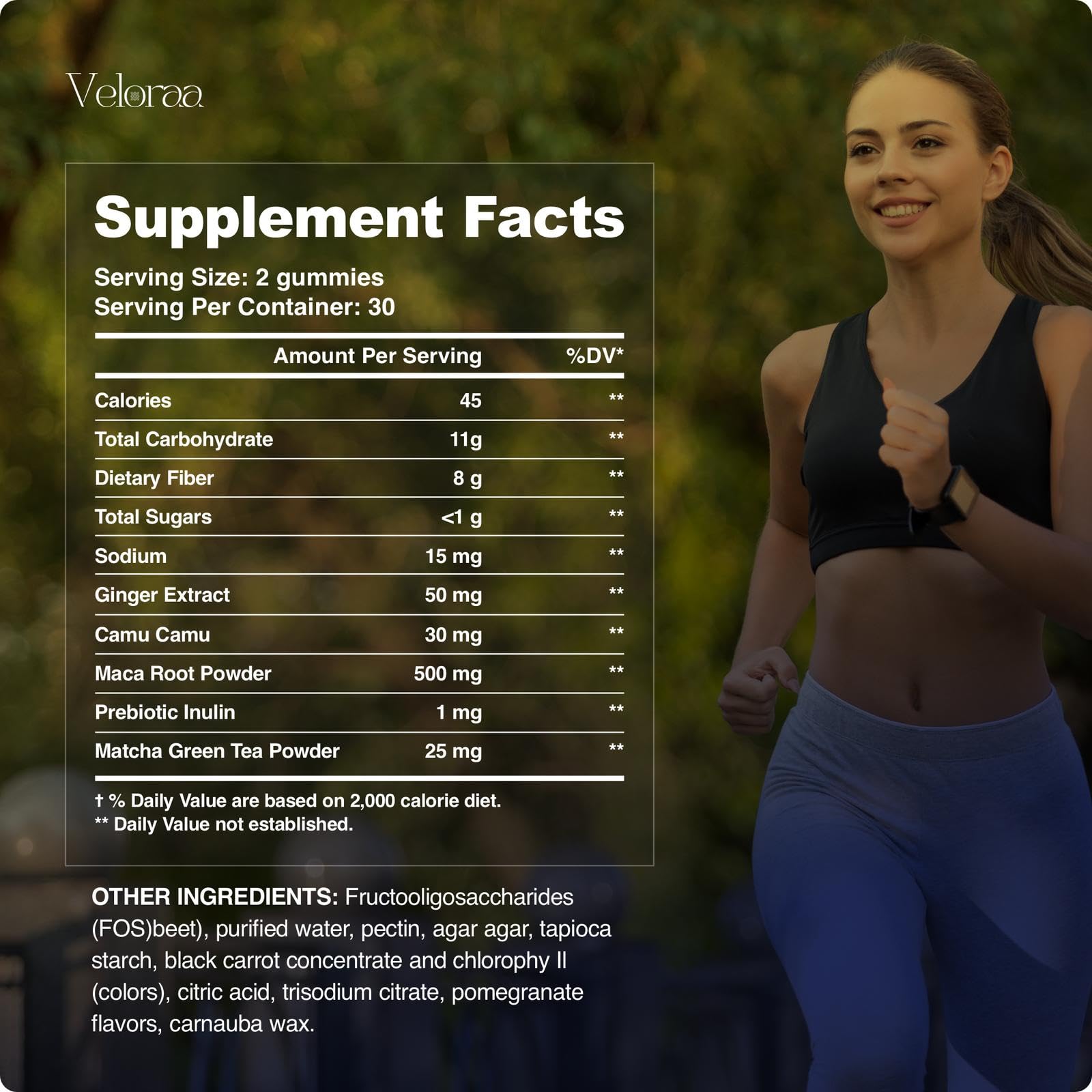 - SUPER BLEND FORMULA - Infused with a powerhouse blend of Prebiotic Inulin, Ginger Extract, Camu Camu, Maca Root Powder, and Matcha Green Tea Powder, these gummies offer more than just fiber. This superfood combination helps boost gut health, provide antioxidants, and support overall wellness.