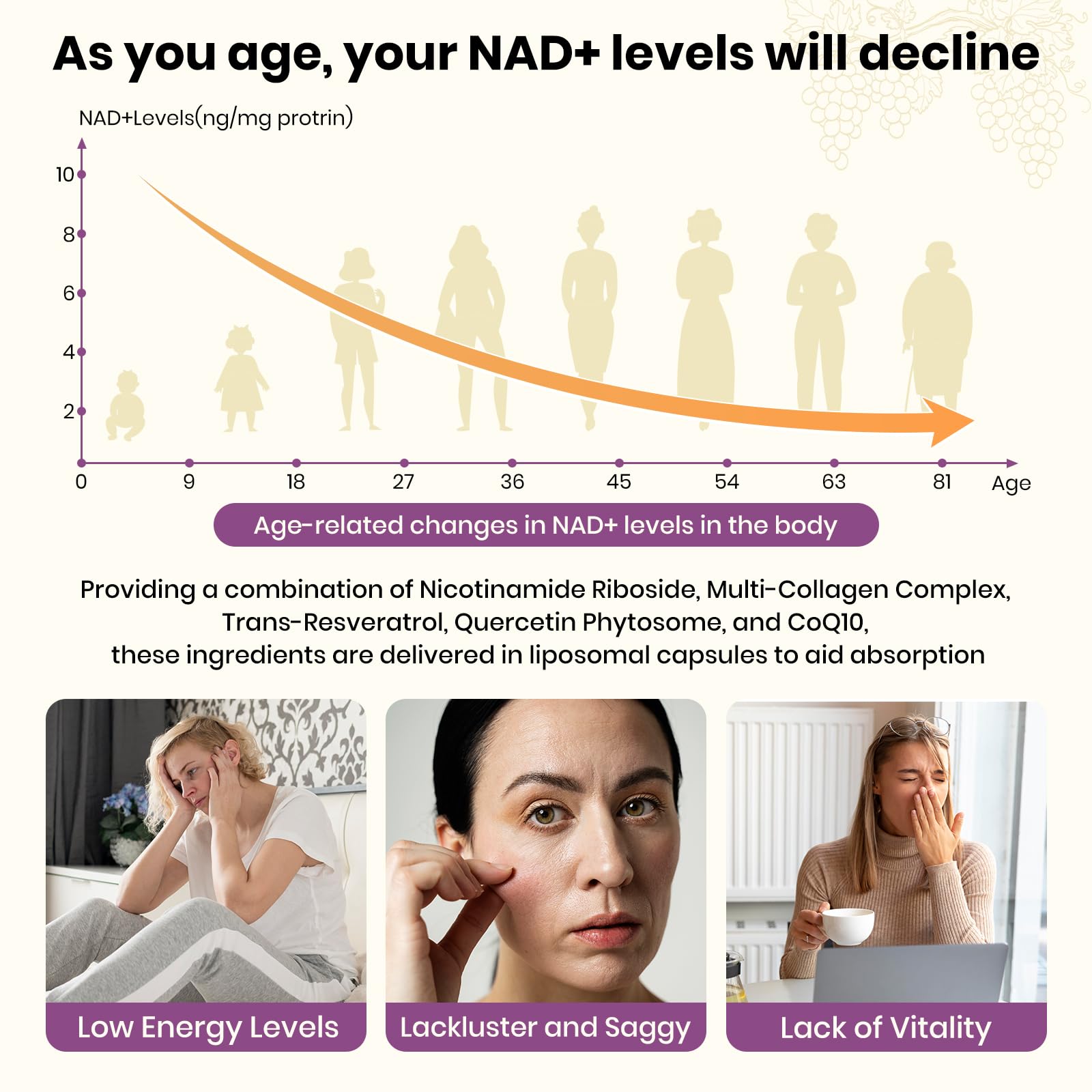 VEV NAD+ Supplement with Resveratrol & Collagen - Supports Cellular Energy & Healthy Aging, Liposomal NAD Capsules for Enhanced Absorption - 120 Capsules