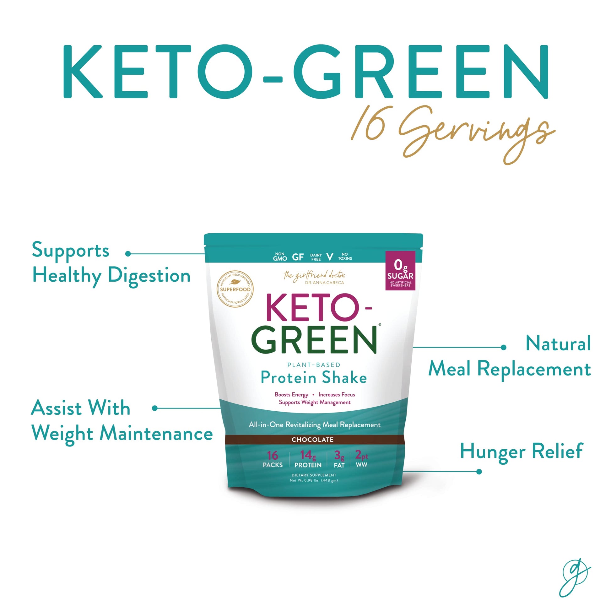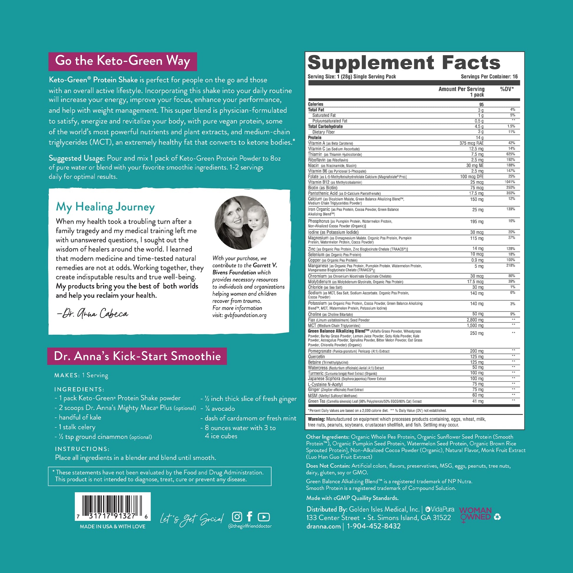 VIDAPURA Keto Green Protein Shake - Chocolate Ketogenic Protein Powder Drink, Lactose-Free Vegan Protein, Supports Gastrointestinal Health, Aides Natural Body Detoxification, 16 Pack