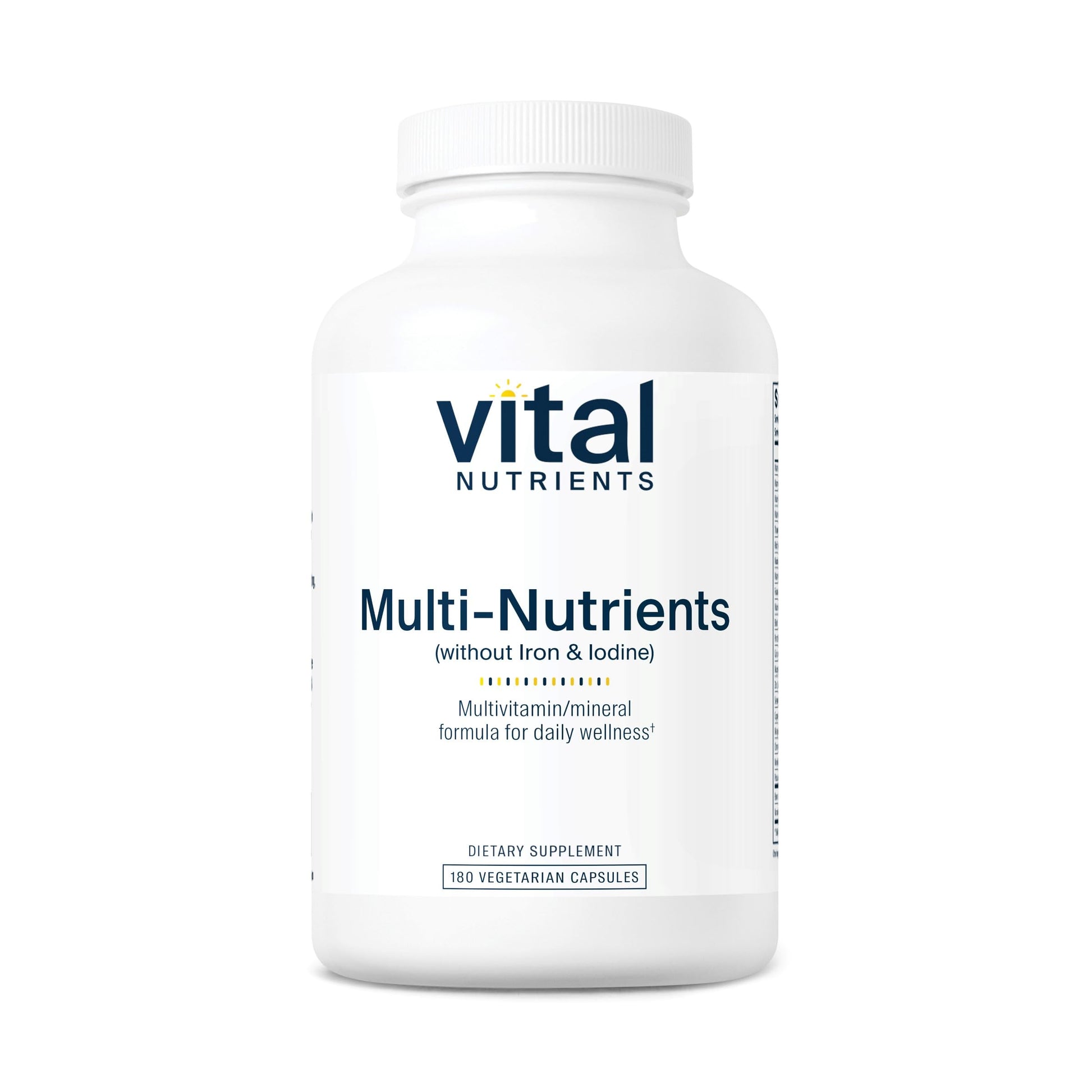 Vital Nutrients Multi-Nutrients with No Iron or Iodine | Comprehensive Vegetarian Daily Multivitamin and Mineral Formula with Potent Antioxidants* | Gluten, Dairy and Soy Free | 180 Capsules