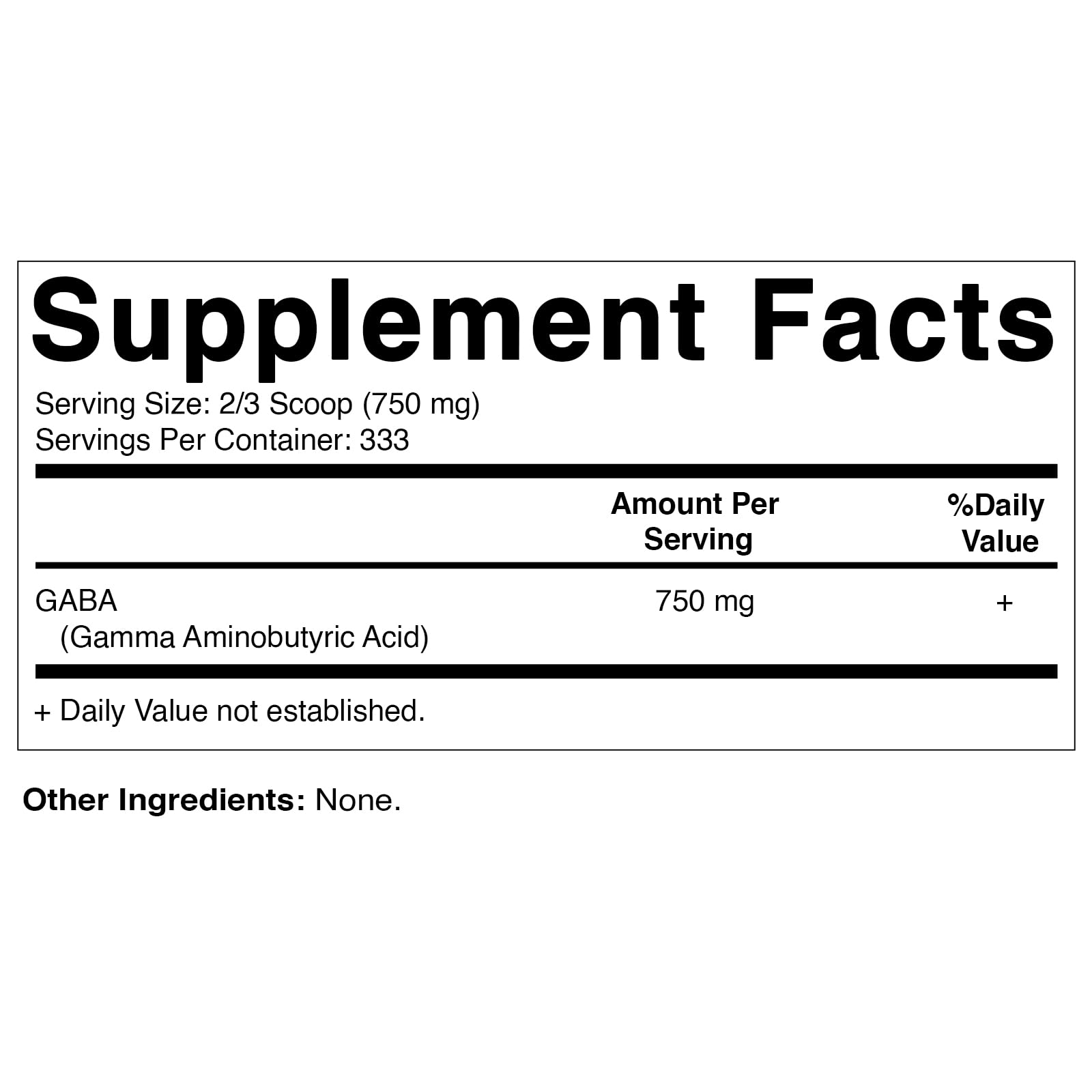 Vitamatic Gamma Aminobutyric Acid Powder 750 mg per Serving - 250 Grams - Also Called GABA - 333 Servings