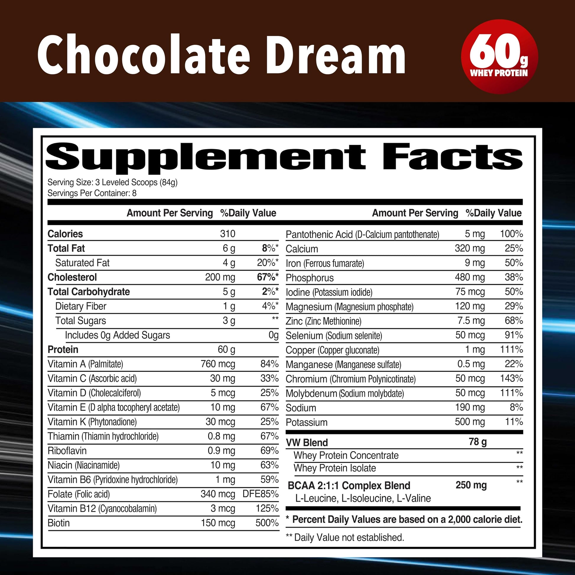 Vitamin Whey - Premium Whey Protein Powder, Chocolate Dream, 60g Protein, Gluten-Free, BCAA Complex, 26 Vitamins & Minerals