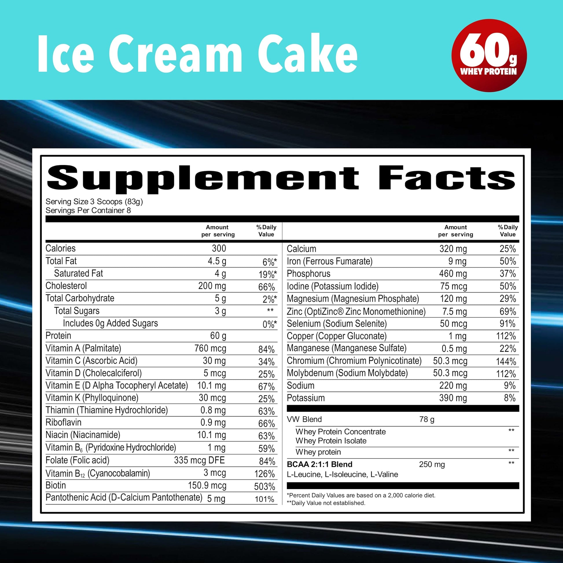 Vitamin Whey Protein Powder, Ice Cream Cake Flavor, 60g Whey Protein, 26 Vitamins & Minerals, BCAA Complex, Gluten-Free