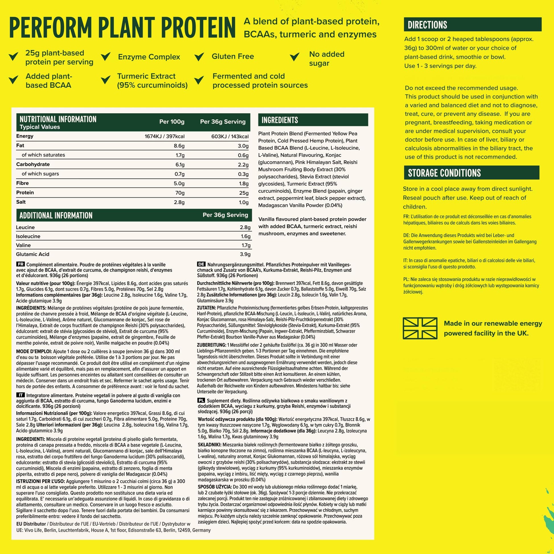 VIVO Life Perform - Raw Vegan Madagascan Vanilla Protein Powder | Pea & Hemp Protein Blend with BCAA | Gluten & Soy Free Protein Shake (33 oz)