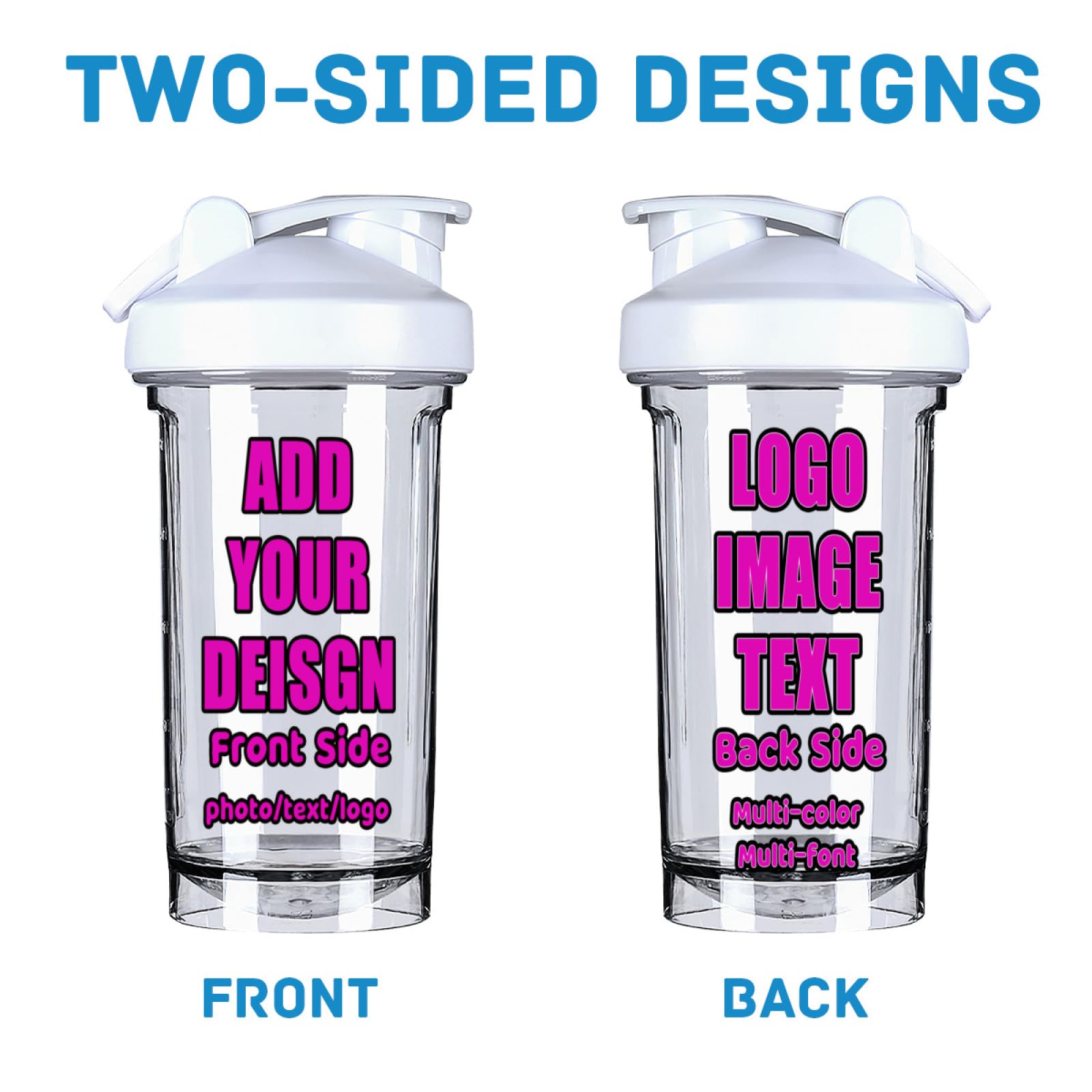 - Personalized Leak Proof Sports Shaker Cups: Click Customize Now Button, You Can Upload Your Picture Logo Text, What’s More, You Can Make 2 Design In This Shaker Bottles, Front And Back