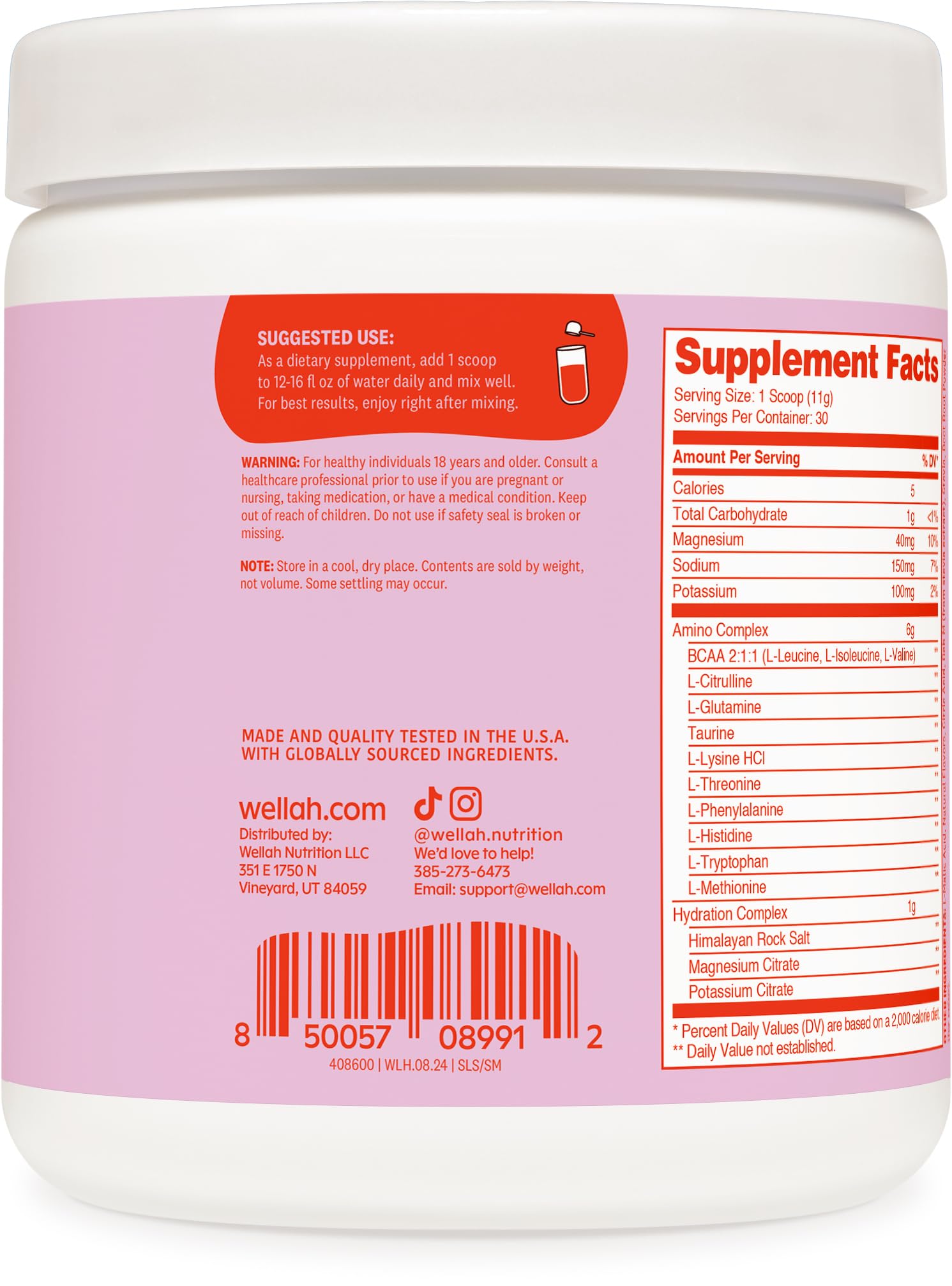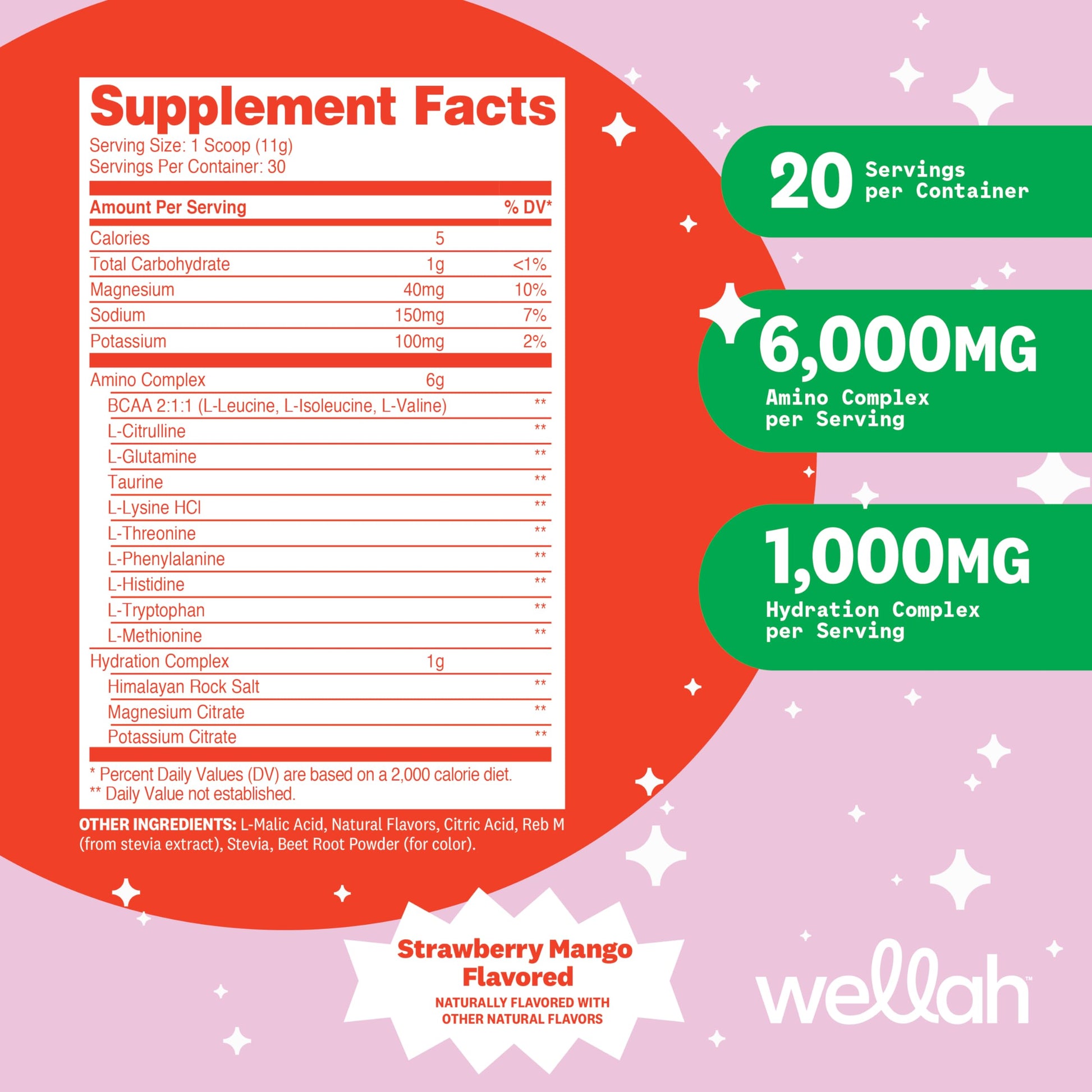 Wellah So Long Soreness BCAA Powder (Strawberry Mango Flavored) 30 Servings - with Hydration Complex