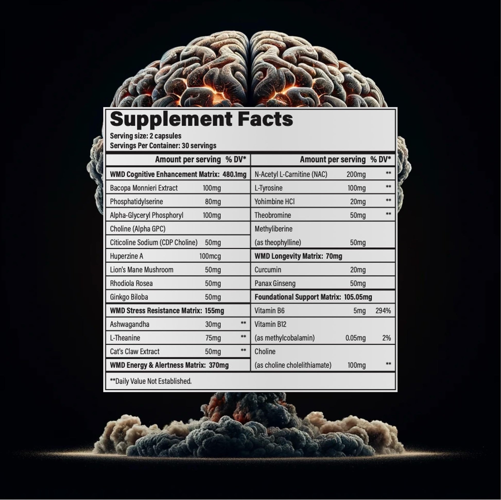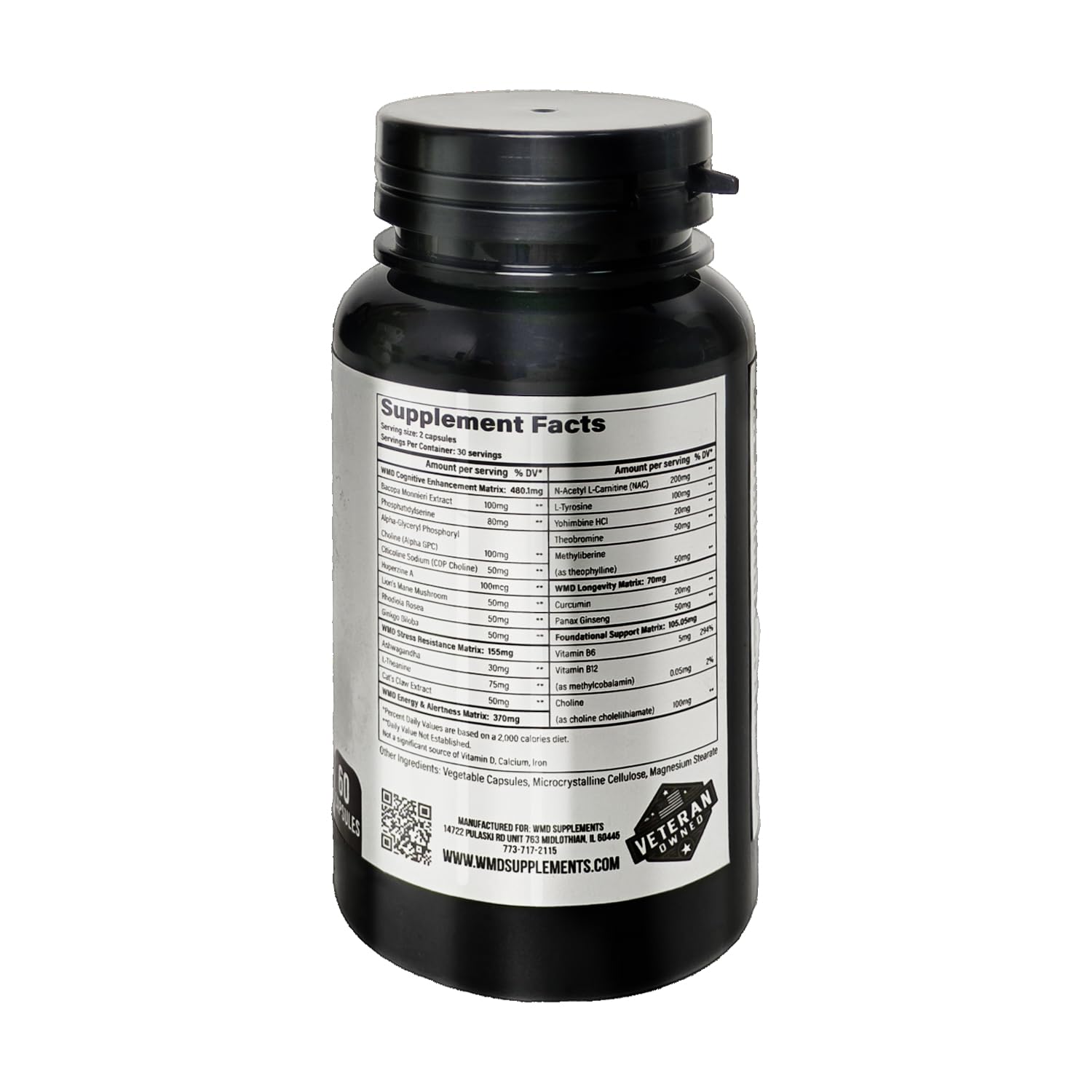 WMD NeuroFusion Nootropic Brain Supplement - Memory, Focus, Mental Clarity & Cognitive Support - Gluten Free, Non-GMO, Vegan, Adaptogen Formula -- 60 Capsules