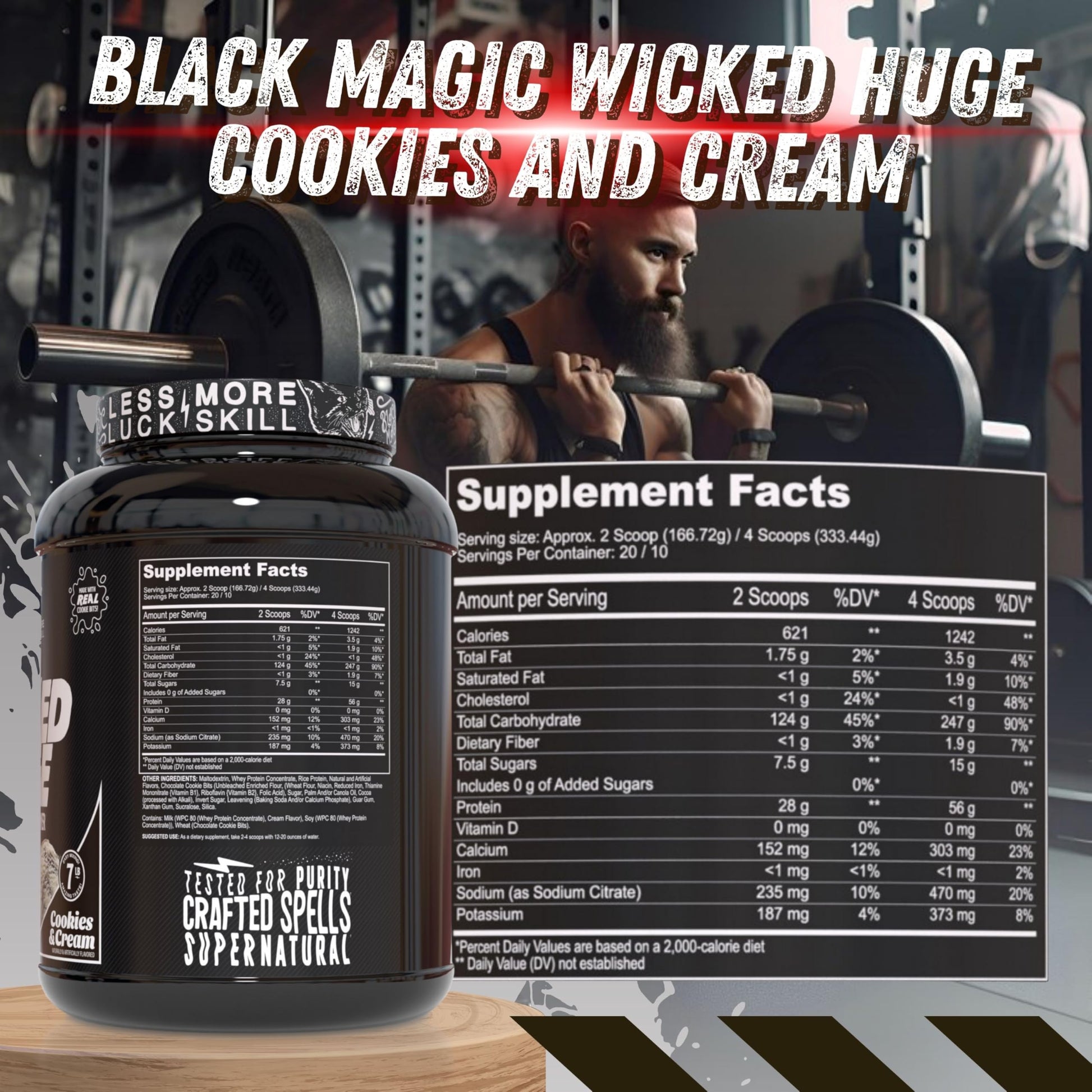 - 🍽️ Essential Caloric Support: When food alone isn't enough, Wicked Huge steps in to provide the extra calories you need. Ensure you're meeting your calorie goals and supporting your mass gaining ambitions with the essential black magic nutrients.