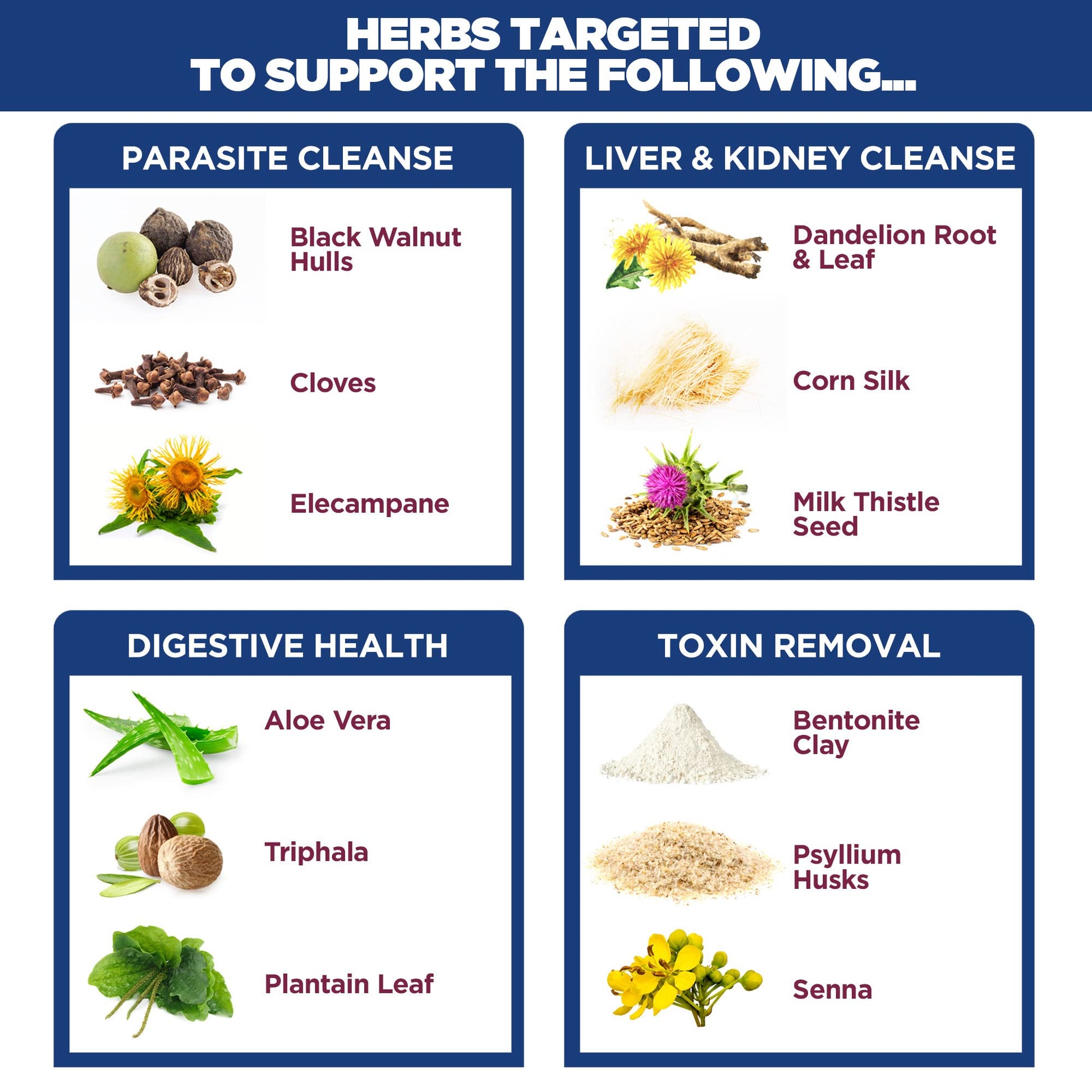 - CLEANSES, PROTECTS, REBUILDS: Our more concentrated and powerful three-part herbs and fiber program gives a gentle yet thorough cleansing of the colon and the entire body.