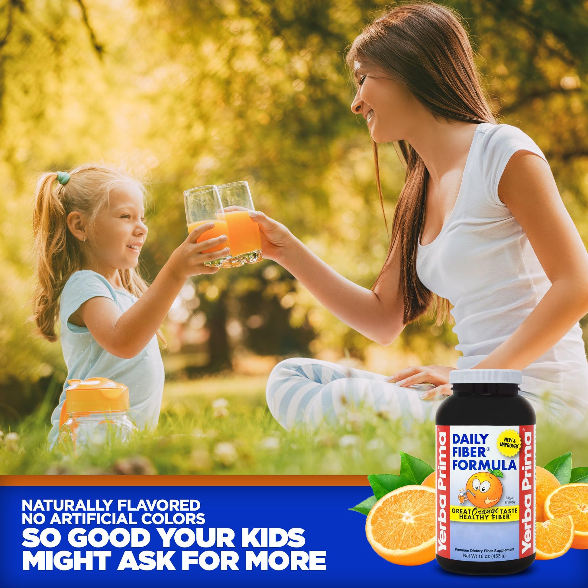 Yerba Prima Orange Daily Fiber Formula 1pound - Non-GMO, Gluten Free, Made in The USA, Delicious Natural Orange Flavor