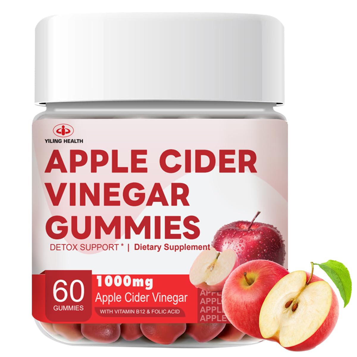- 【THE GOODS INSIDE】YILING Apple cider vinegar gummies per botte contains 60 count of ACV gummies, each serving has 1000mg of ACV, 1 month supply, natural apple flavor.each serving has acetic acid that may help cleanse your body and support digestion