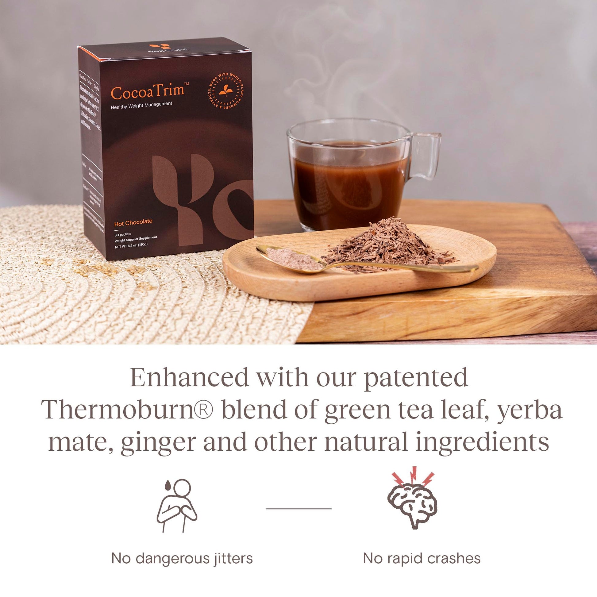 • Enhanced with our patented Thermoburn blend of green tea leaf, yerba mate, ginger and other natural ingredients, CocoaTrim aligns with your natural weight management goals, giving you a realistic path to a slimmer, healthier you*