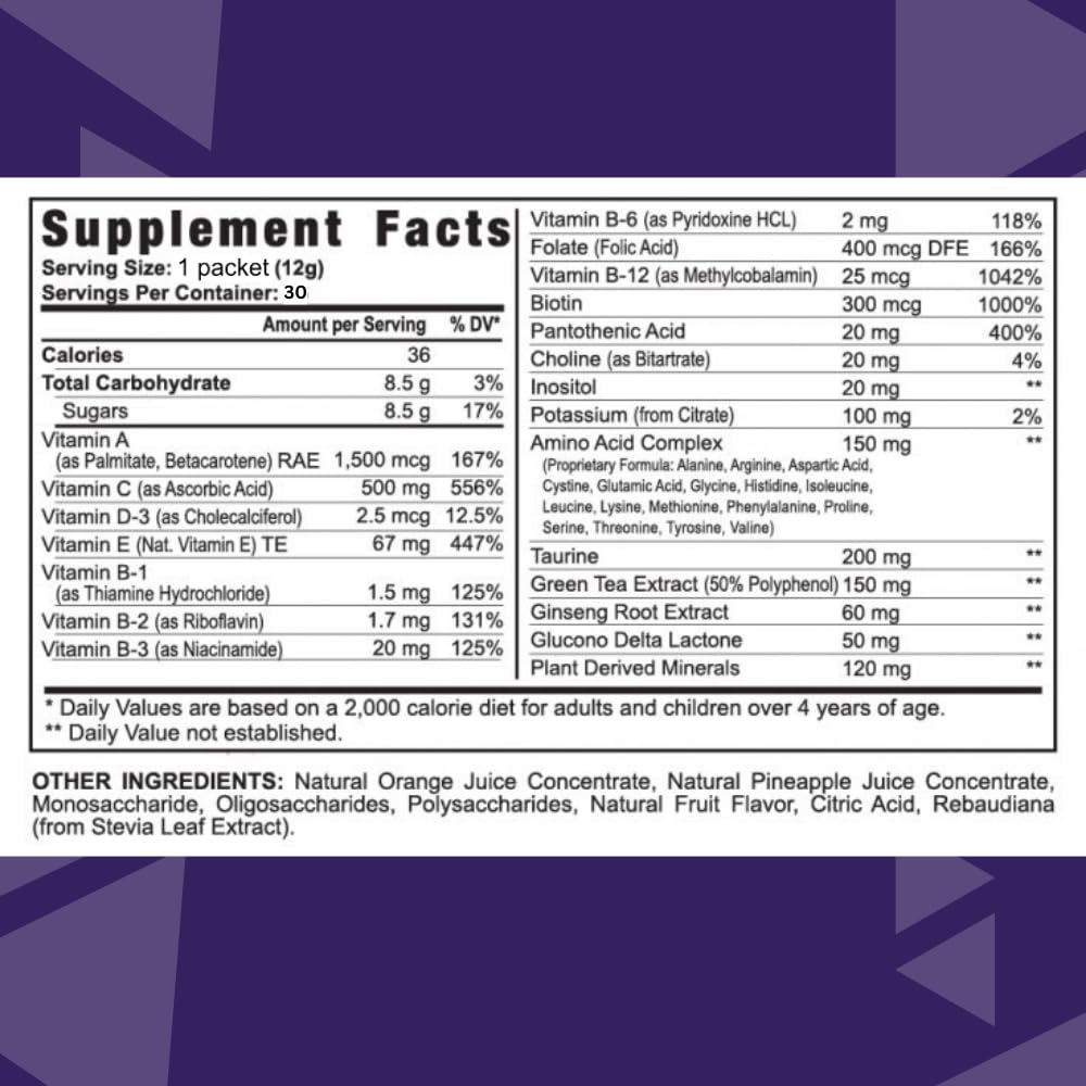 - Comprehensive Nutrient Blend: Formulated with essential vitamins, amino acids, and electrolytes to support energy levels and overall health during physical activity.