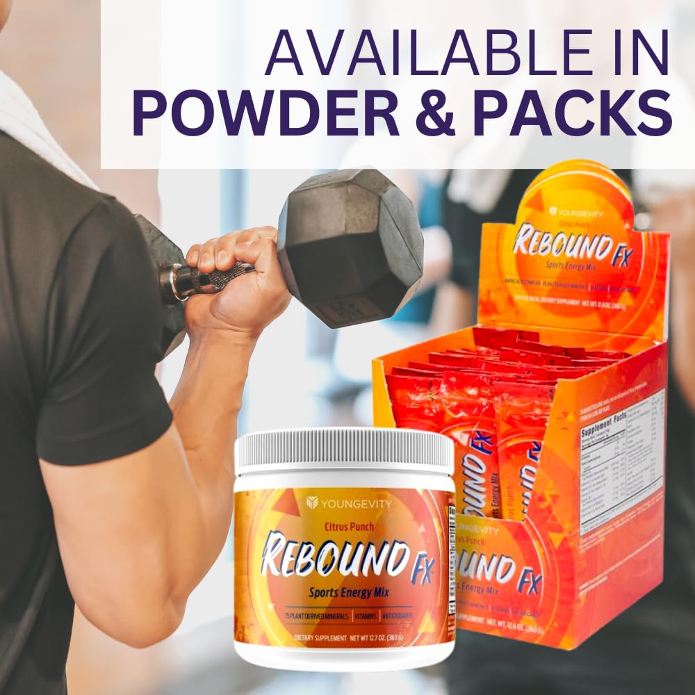 Youngevity Rebound FX™ Citrus Punch On-The-Go Stick Packs - 30 Count Box - Sports Energy Drink with Vitamins, Amino Acids, and Electrolytes - Natural Caffeine - Supports Hydration and Recovery